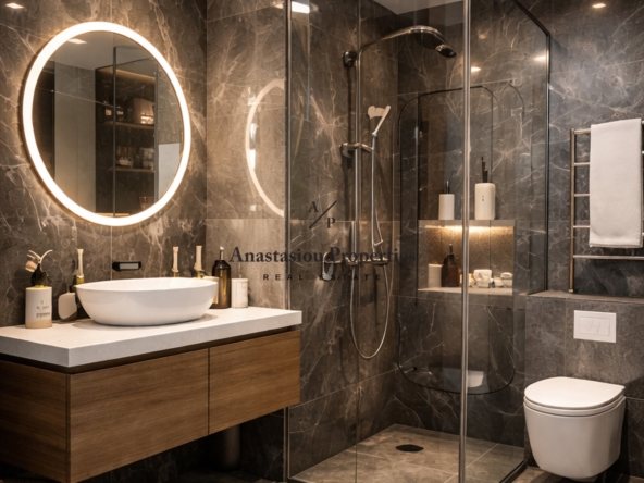 Apartment For sale, floor: 1st, in Thermi – Center. The Apartment is 46 sq.m.. It consists of: 1 bedrooms, 1 bathrooms, 1 kitchens, 1 living rooms and it also has 1 parkings (1 Open). The property was built in 2026. Its heating is Autonomous with Natural gas, Underfloor heating, Thermal insulation, Thermal facade are also available, it has Alluminum frames with Double glazed – Energy Efficient windows, the energy certificate is: A and its floors are Tiles. The property’s status is: New development, Under construction, it is close to Transportation, Park, School, Square, Super Market, 1200 Meters from city, it has Sea, Openness view and it has SouthWest orientation. The Apartment is Painted, With Facade, Bright, Airy, Ramp / Wheelchair access, Luxury, Modern, it is suitable for Investment and it also has the following unique features and advantages: Elevator, Storage, Security door, CCTV, Porch, Drains. Price: €130.000. Anastasiou Properties, contact phone: 6974944821, email: anastasiouproperties@gmail.com, website: