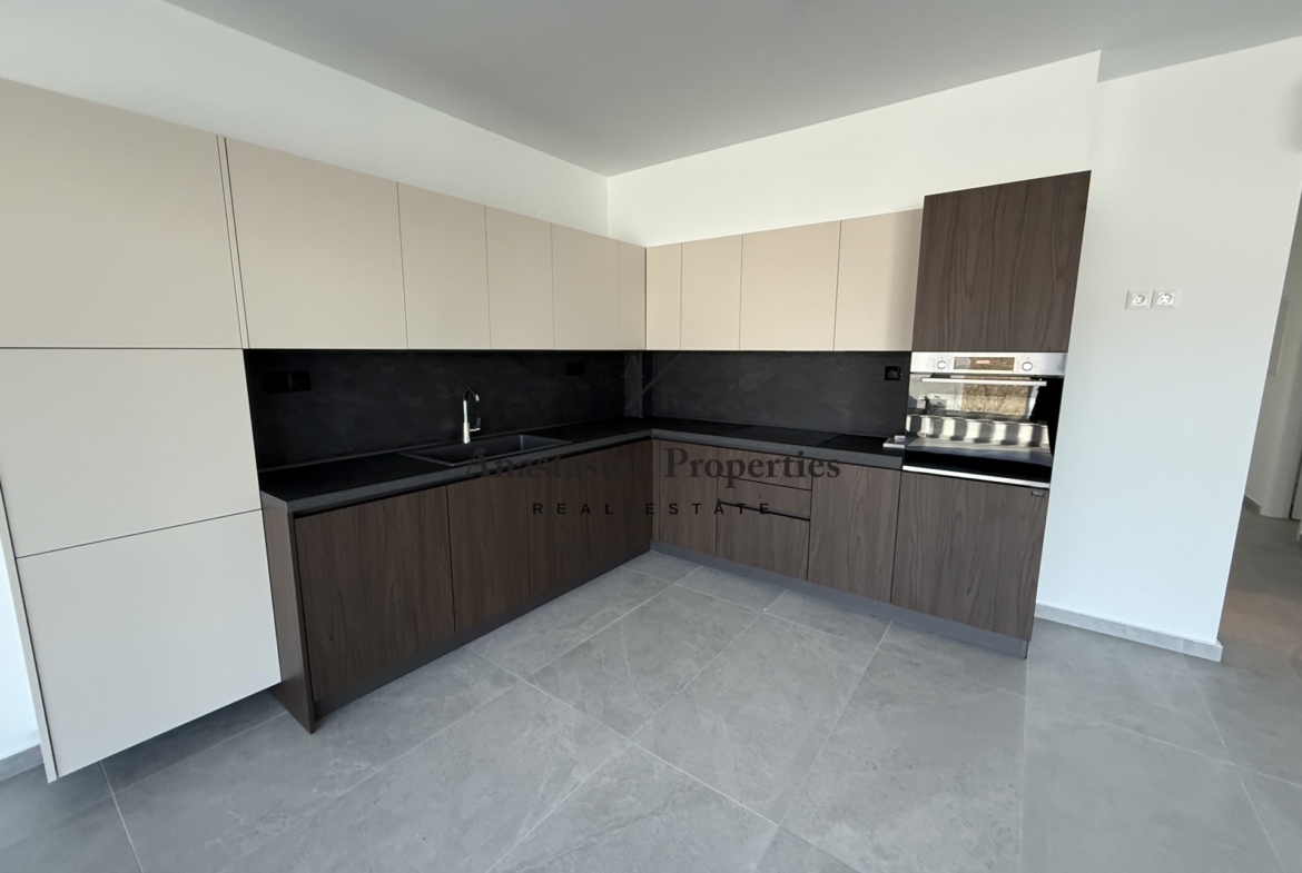 Apartment For rent, floor: 1st, in Thermi – Center. The Apartment is 112 sq.m.. It consists of: 3 bedrooms (1 Master), 2 bathrooms, 1 kitchens, 1 living rooms and it also has 1 parkings (1 Open). The property was built in 2026. Its heating is Personal with Heat pump, Underfloor heating, Air conditioning, Thermal facade are also available, it has Thermal brake frames with Double glazed windows, the energy certificate is: A+ and its floors are Tiles. The property’s status is: New development, Freshly painted, Excellent condition, it is close to Transportation, Park, School, Square, Church, Public market, Super Market, it has Openness view and it has EastWest orientation. The Apartment is Painted, With Facade, Bright, Airy, Sunny, Ramp / Wheelchair access, Modern, it is suitable for University Students and it also has the following unique features and advantages: Window Screens, Elevator, Electric Appliances, Security door, CCTV, Security alarm, Smoke detector, Internet, Three phase current, Grass, Quiet neighborhood, Porch, Car charger. Price: €1.500. Anastasiou Properties, contact phone: 6974944821, 2314004800, email: anastasiouproperties@gmail.com, website: www.anastasiouproperties.gr
